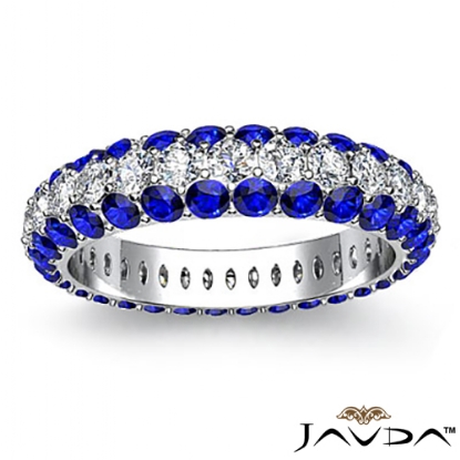 Round Pave Sapphire Diamond Engagement Women Eternity Ring Platinum (0.9Ct. tw.)