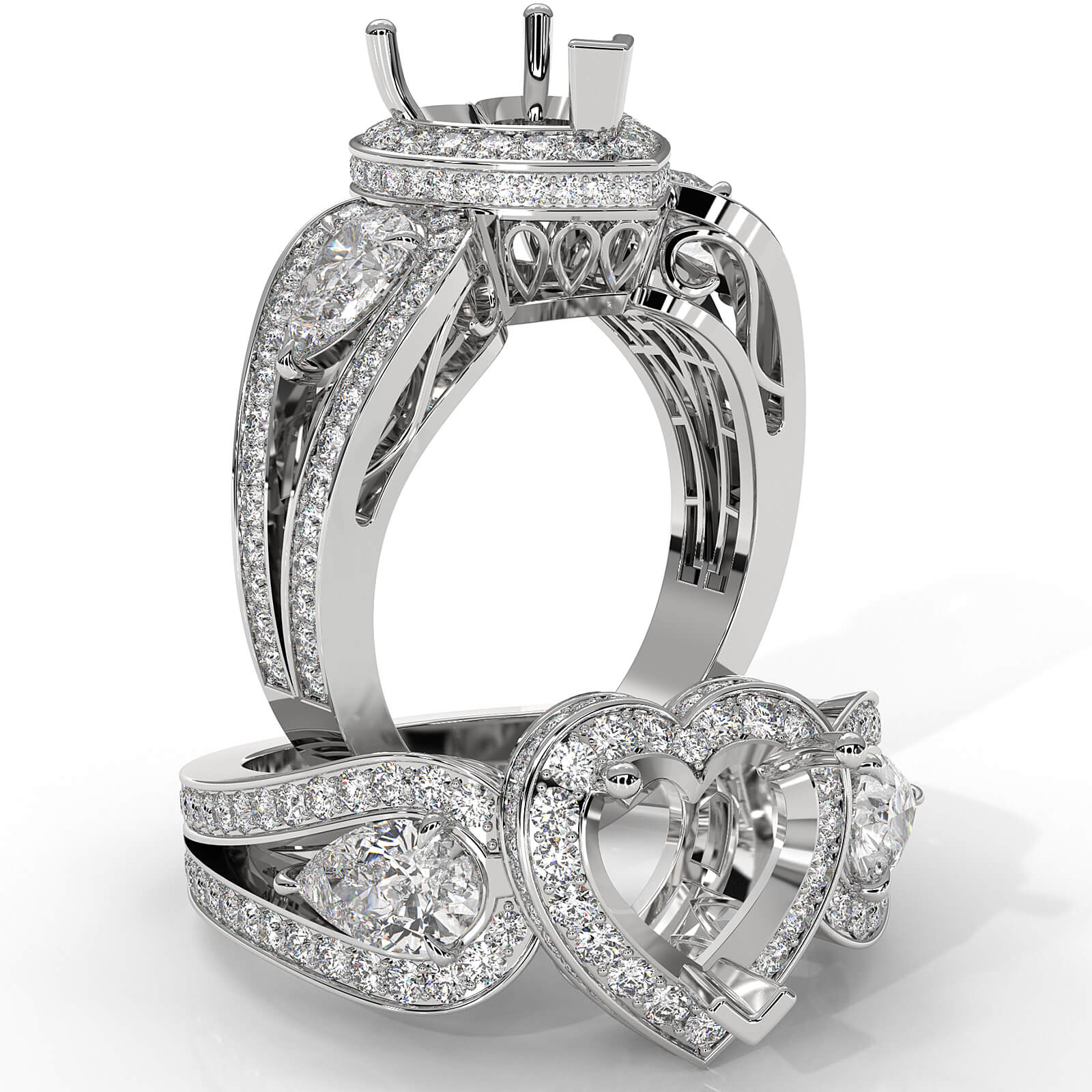 Heart Diamond Engagement Halo 3Stone Ring Set Platinum SemiMount (1.85Ct. tw.)