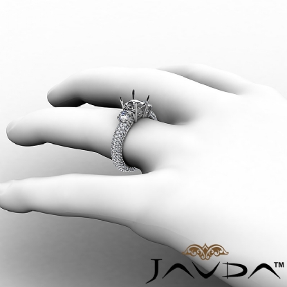 Beautiful in its own way! This & Platinum 950 ring is scintillating. A semi mount asscher center diamond, clustered by two round cut side diamonds are all in prong setting. Pave set diamonds on the shank set the standards high! (2.25Ct. tw.)