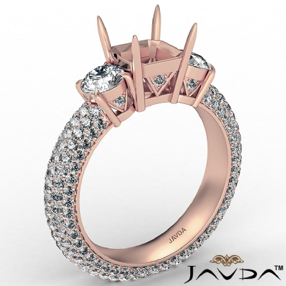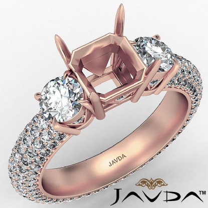 Three 3 Stone Asscher Diamond Engagement Ring 14k Rose Gold Semi Mount (2.25Ct. tw.)