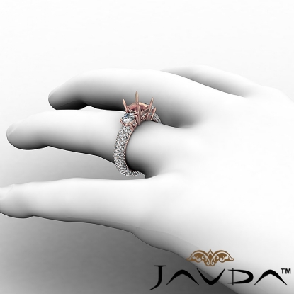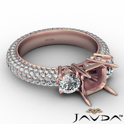 Beautiful in its own way! This & 14k Rose Gold ring is scintillating. A semi mount asscher center diamond, clustered by two round cut side diamonds are all in prong setting. Pave set diamonds on the shank set the standards high! (2.25Ct. tw.)