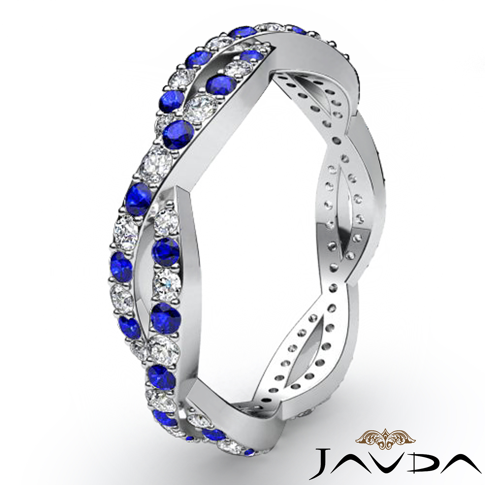 Round Prong Set Sapphire Diamond Eternity Wedding Band made in 14k White Gold Ring. (0.36Ct. tw.)