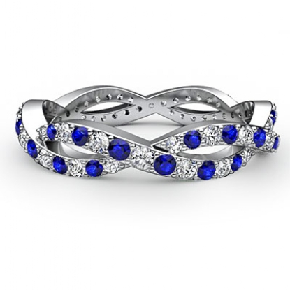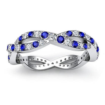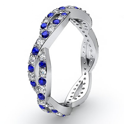 Round Sapphire Pave Diamond Eternity Wedding Band Women's Ring Platinum (0.36Ct. tw.)