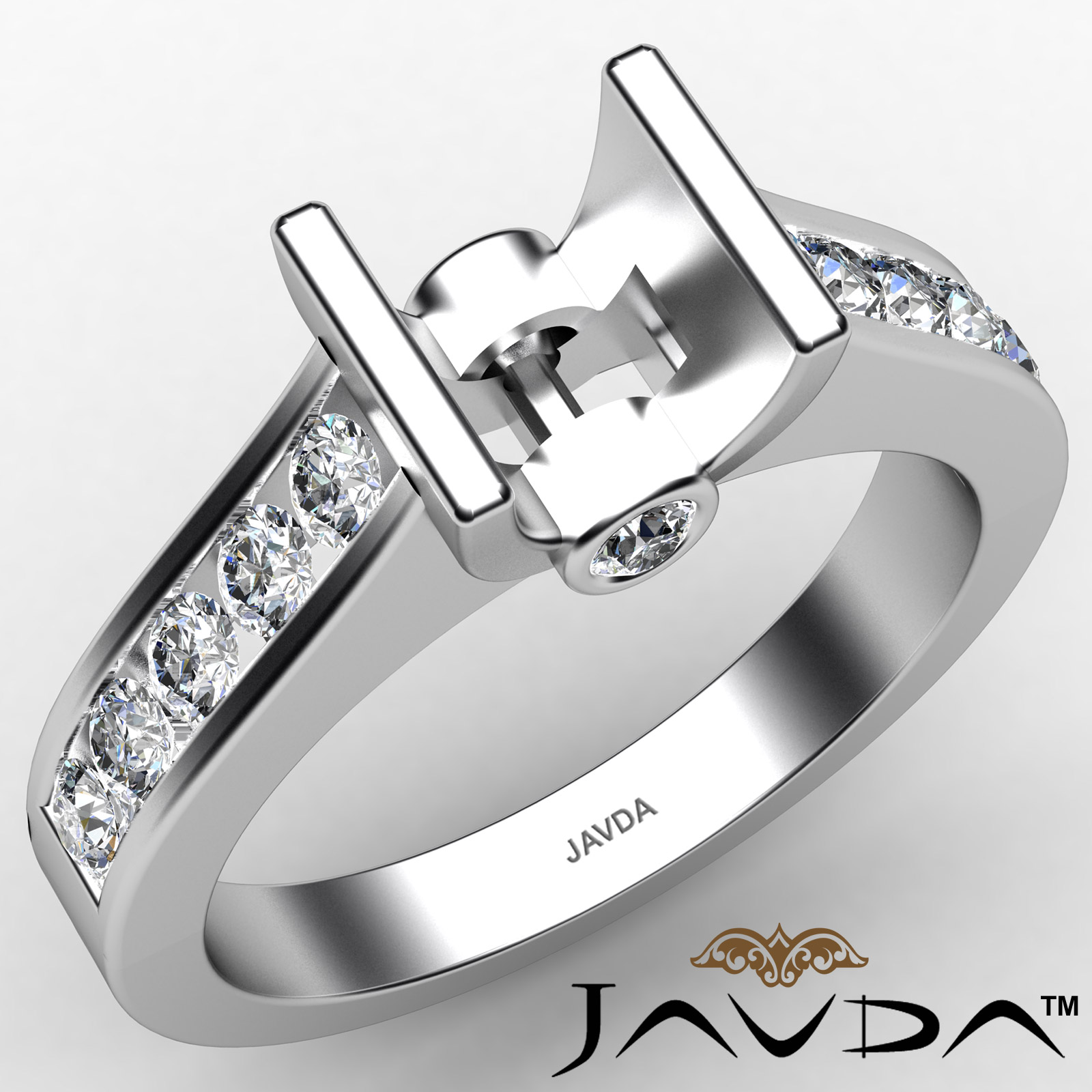 Undeniably striking, this diamond engagement ring is made in Platinum 950. It features a asscher semi mount in bar setting with lustrous round diamonds along the shank in channel setting. (0.5Ct. tw.)