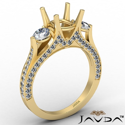 Glamorous and elegant, this three-stone semi mount ring triples the shimmer with . side diamonds intensifying the center diamond in prong setting. The smaller