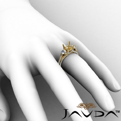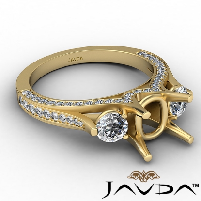 Three Stone Cushion Diamond Engagement Ring Set 14k Gold Semi Mount (1.2Ct. tw.)