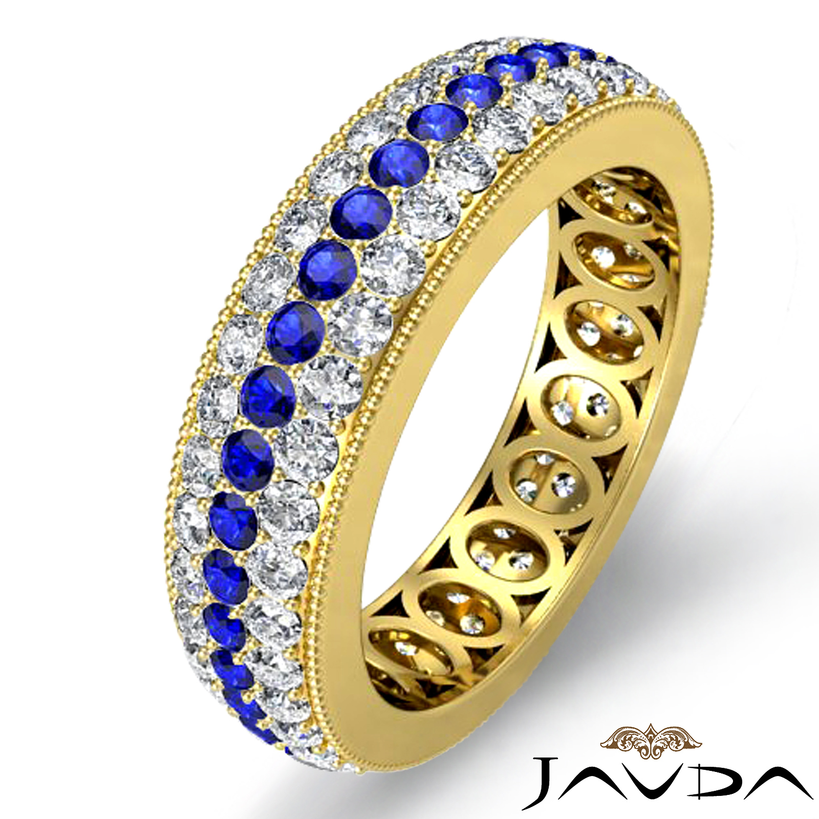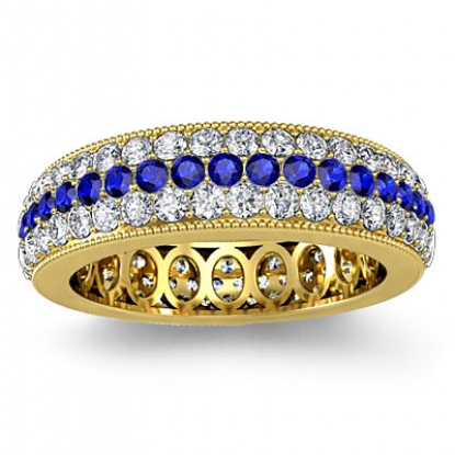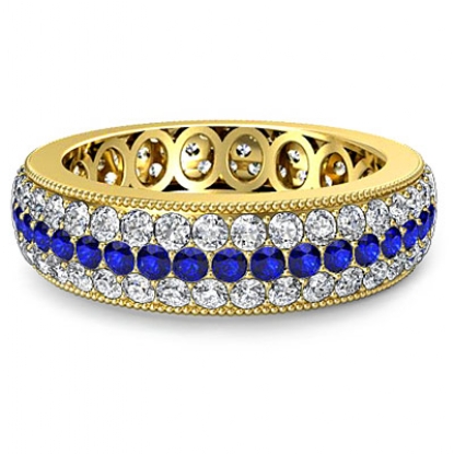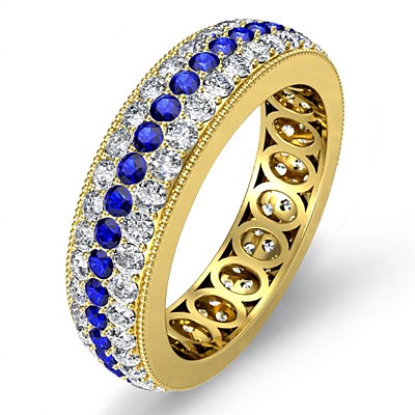 3Row Sapphire Diamond Women's Wedding Eternity Band 18k Gold Ring (1.5Ct. tw.)
