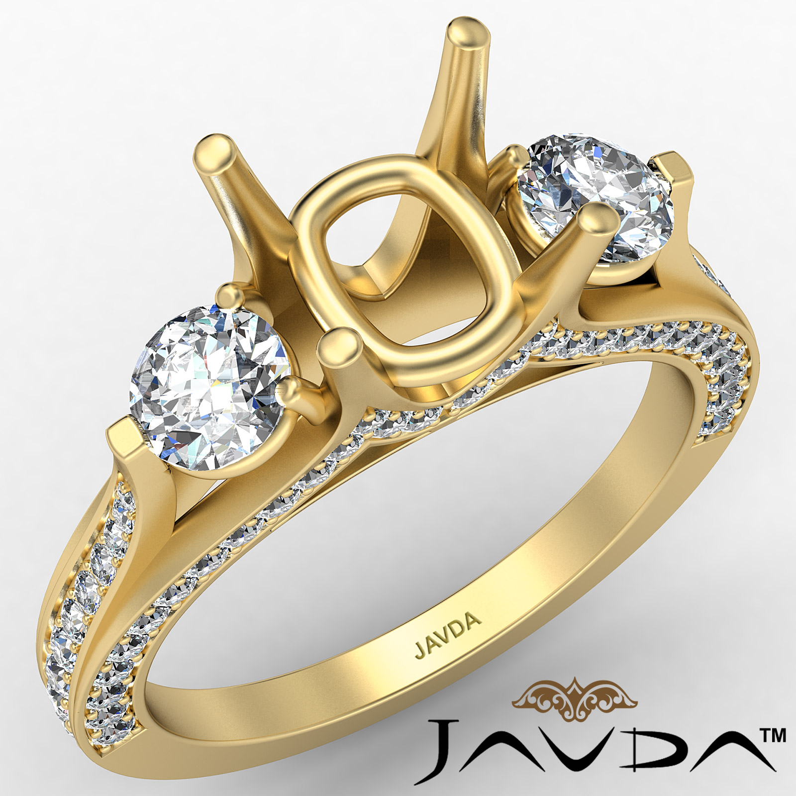 Three Stone Cushion Diamond Engagement Ring Set 18k Gold Semi Mount (1.2Ct. tw.)