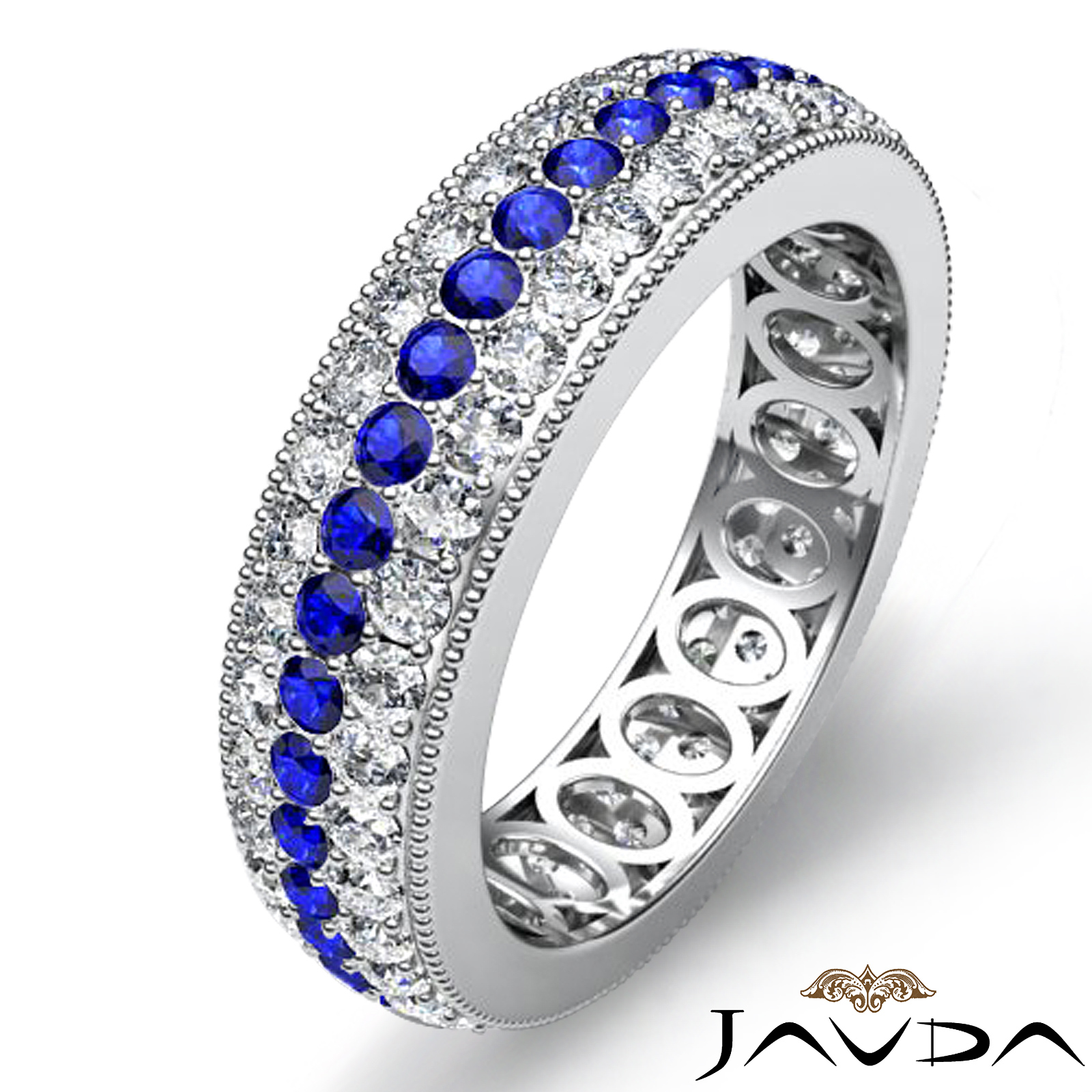 3Row Sapphire Diamond Women's Wedding Eternity Band Platinum Ring (1.5Ct. tw.)