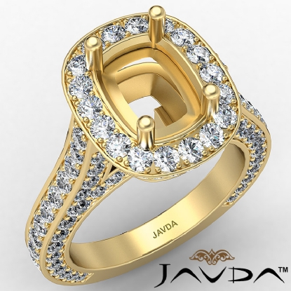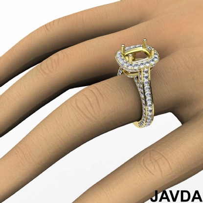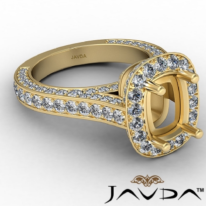 Diamond Engagement Cushion Semi Mount Halo Pave Set Ring 14k Gold (2.1Ct. tw.)