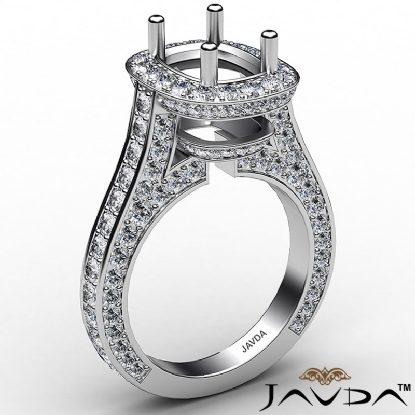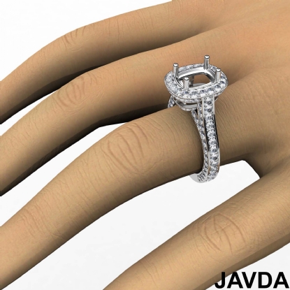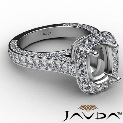 Diamond Engagement Cushion Semi Mount Halo Pave Set Ring 18k W Gold (2.1Ct. tw.)