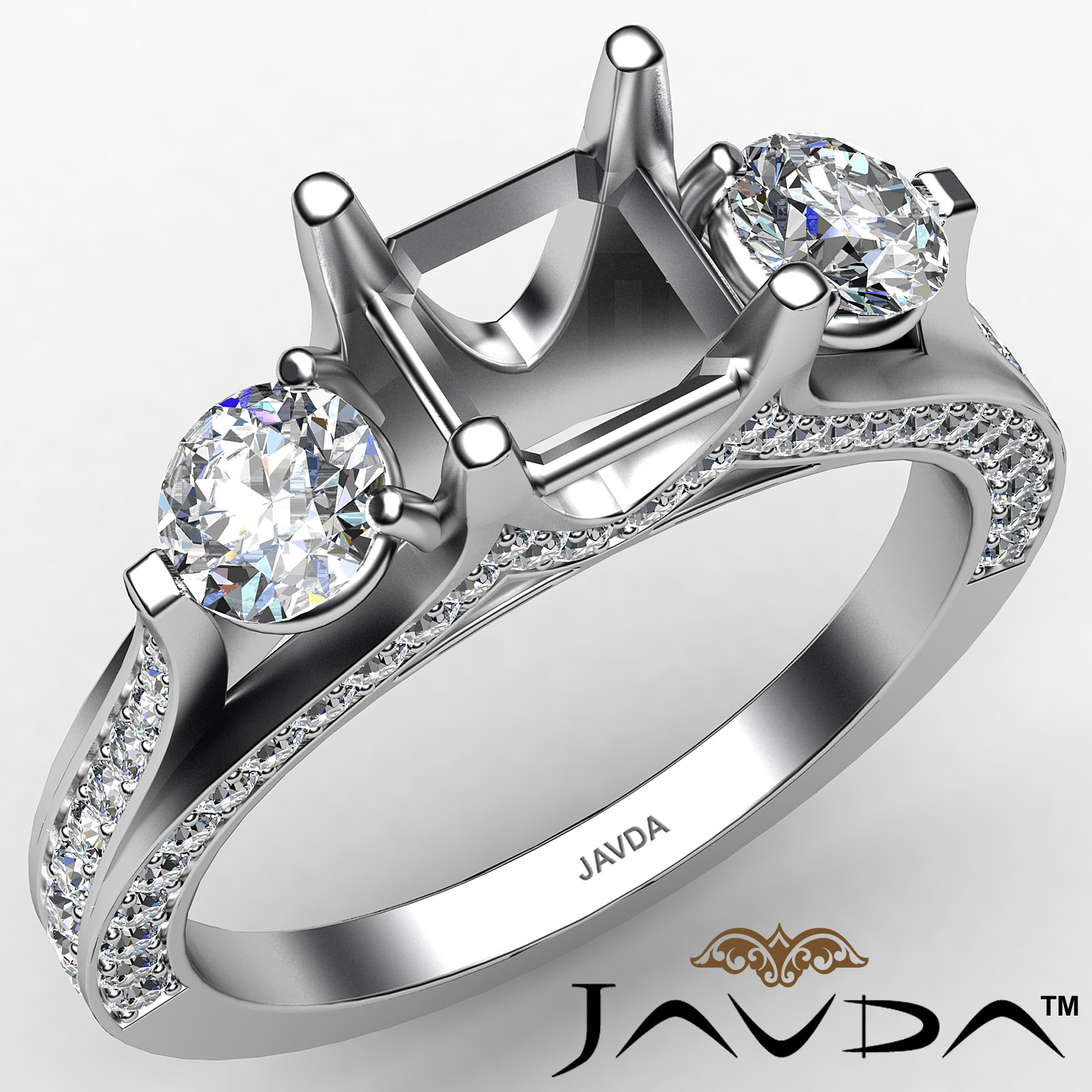 Three Stone Asscher Diamond Engagement Ring Set Platinum Semi Mount (1.2Ct. tw.)