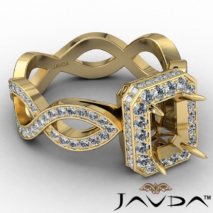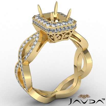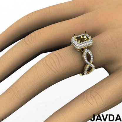 Undeniably striking, this 14k Gold Yellow diamond engagement ring showcases a emerald semi mount in halo setting, with pave set round diamonds dazzling on the halo and the beautiful criss-cross shank. (1.3Ct. tw.)