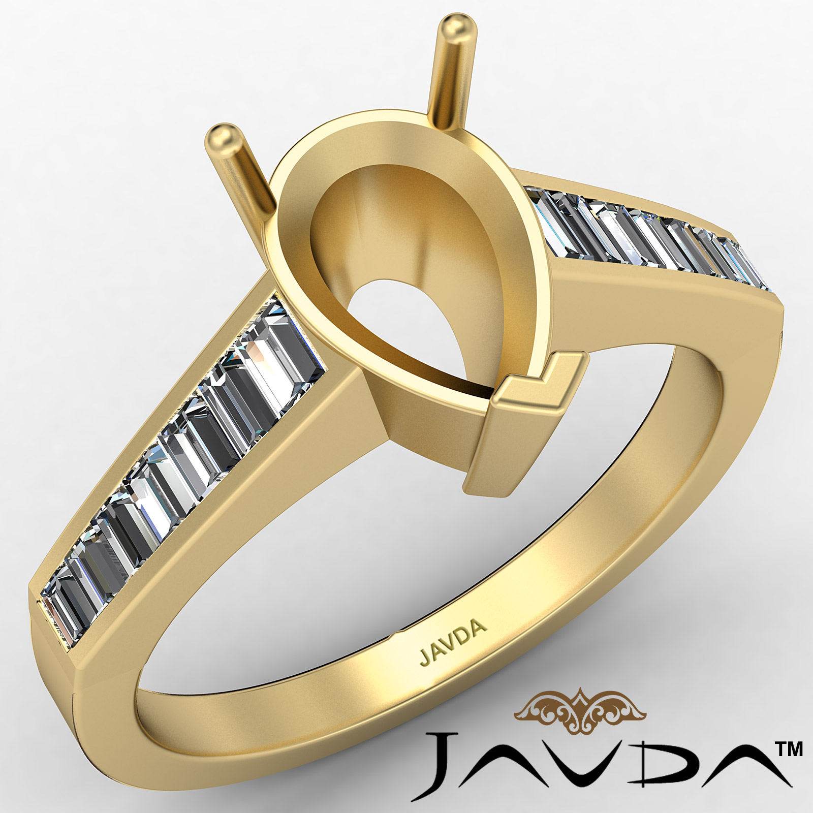 Baguette Channel Diamond Engagement Ring 14k Gold Pear Semi Mount Ring (0.85Ct. tw.)