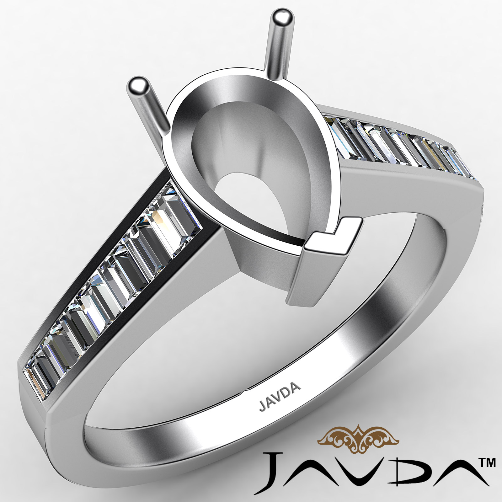 Baguette Channel Diamond Engagement Ring Platinum Pear Semi Mount Ring (0.85Ct. tw.)