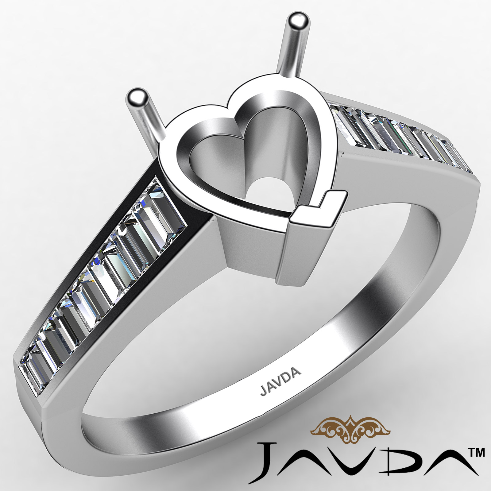 Baguette Channel Diamond Engagement Ring Platinum Heart Semi Mount (0.85Ct. tw.)