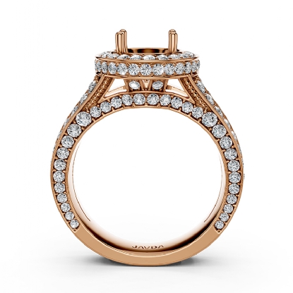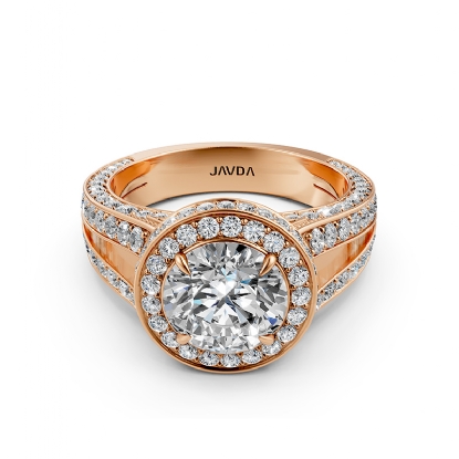 Halo Pave Diamond Engagement Elegant Ring 18k Rose Gold Round Semi Mount (1.5Ct. tw.)
