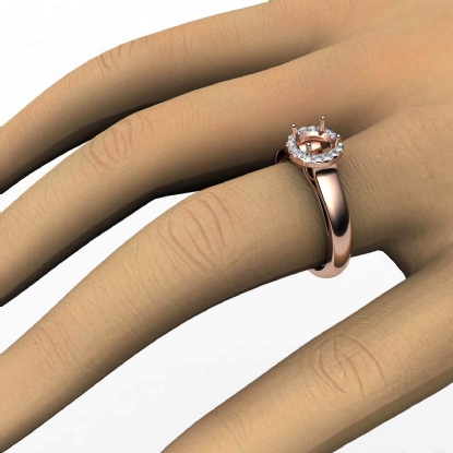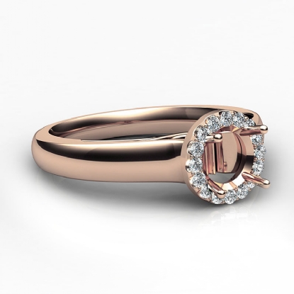 Striking yet forever timeless, this 14k Rose Gold diamond engagement ring features of pave set round diamonds along the semi mount halo. (0.2Ct. tw.)