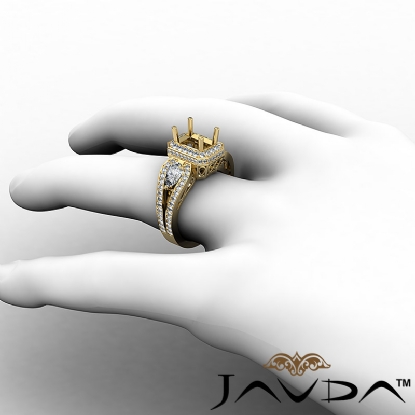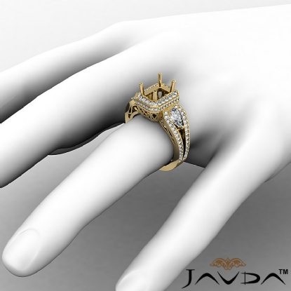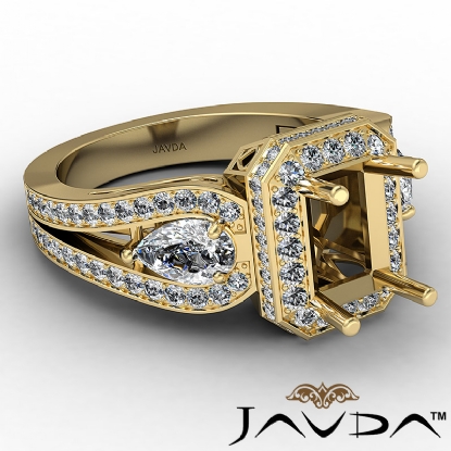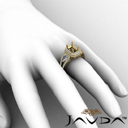 Radiant Diamond Engagement Halo 3Stone Ring Set 14k Gold Semi Mount (1.85Ct. tw.)
