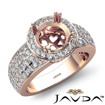 Diamond Engagement Ring Halo Pave Setting Round Semi Mount 18k Rose Gold (2Ct. tw.)