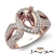 Alluringly distinct, this 14k Rose Gold and diamond engagement ring features a pear semi mount, with pave set round diamonds in halo & along the mesmerising shank. (1.35Ct. tw.)