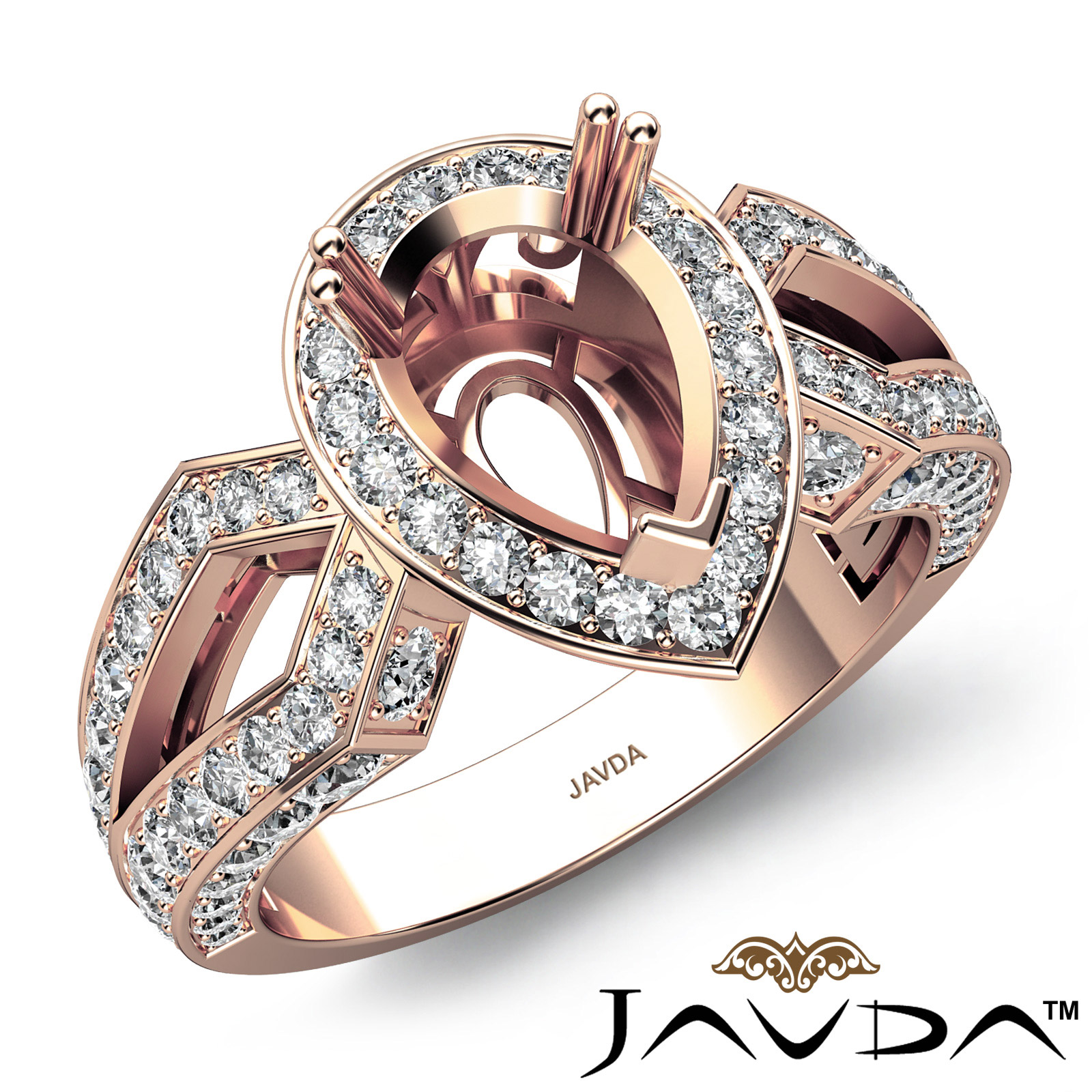 Pear Cut Halo Setting Diamond Engagement Ring Semi Mount 18k Rose Gold (1.75Ct. tw.)