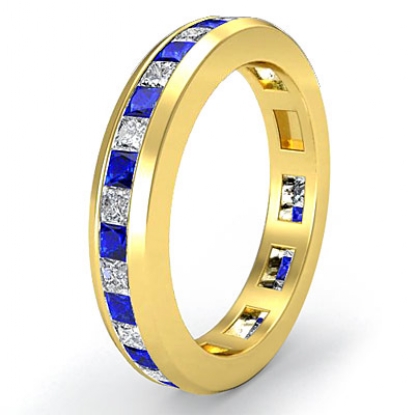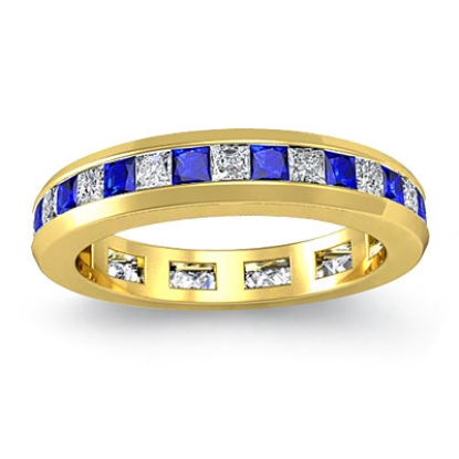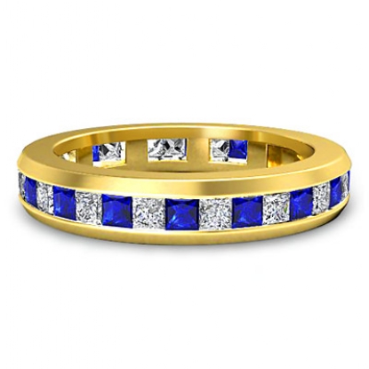 Princess Channel Set Women's Sapphire Diamond Wedding Ring Eternity Band made in 14k Gold Yellow. (0.61Ct. tw.)