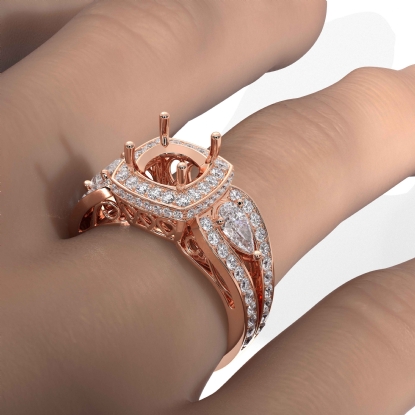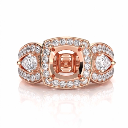 Cushion Diamond Engagement Halo 3 Stone Ring 18k Rose Gold Semi Mount (1.95Ct. tw.)