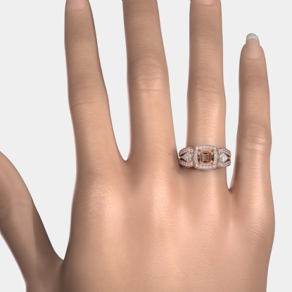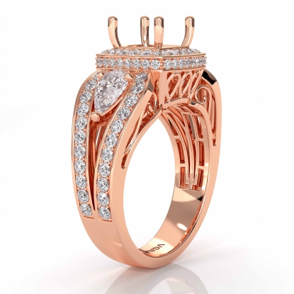 Capture the moment with this 18k Rose Gold 3 Stone engagement ring, featuring a cushion semi-mount halo of round diamonds. It showcases of total round diamonds &
