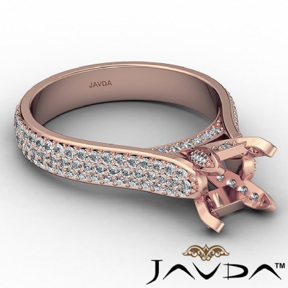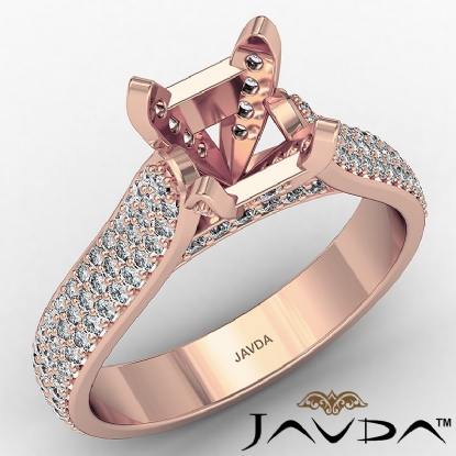 Halo Pave Set Diamond Engagement Cushion Semi Mount Ring 14k Rose Gold (1.45Ct. tw.)