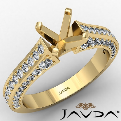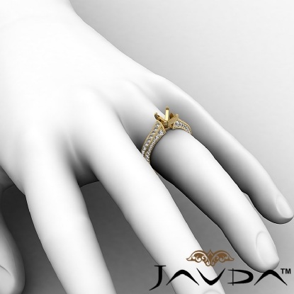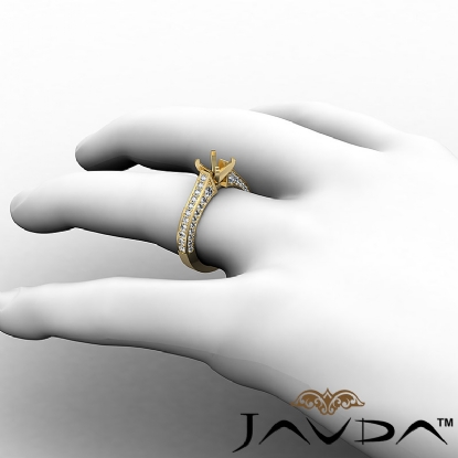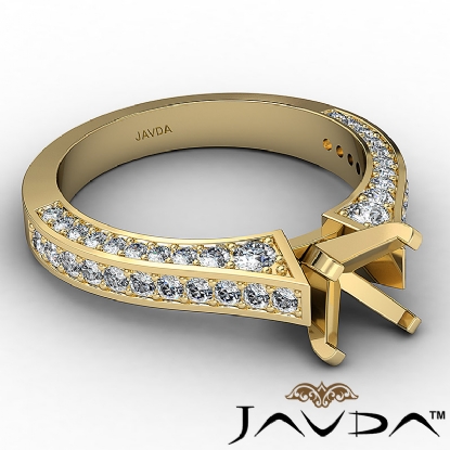 Eyes will be fixated on this immaculate 18k Gold Yellow cushion semi mount diamond engagement ring, showcasing pave set diamonds that complement your choice of center diamond. Total weight of this ring is . (1Ct. tw.)