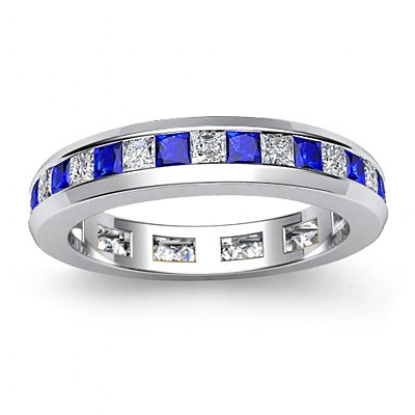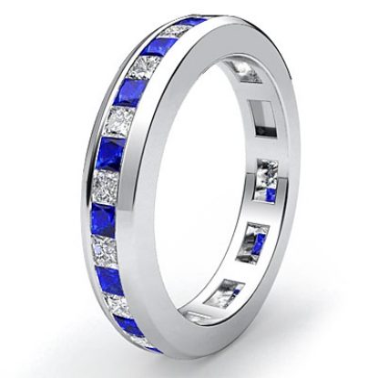 Princess Channel Set Women's Sapphire Diamond Wedding Ring Eternity Band made in Platinum 950. (0.61Ct. tw.)