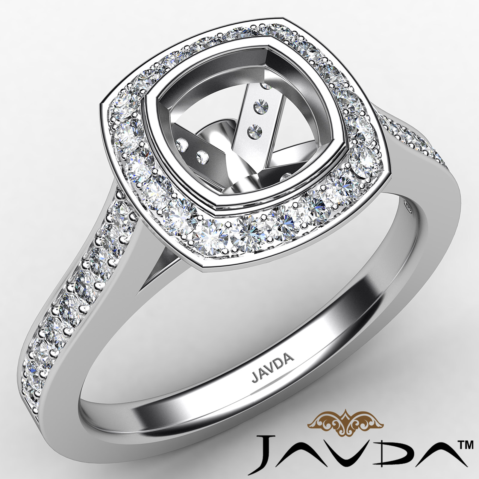 Diamond Engagement Ring Cushion Semi Mount Halo Setting 18k W Gold (0.5Ct. tw.)