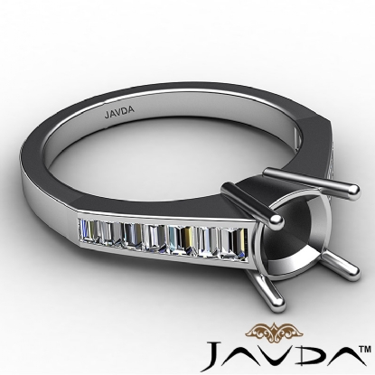 Baguette Channel Diamond Engagement 18k W Gold Semi Mount Ring (0.85Ct. tw.)