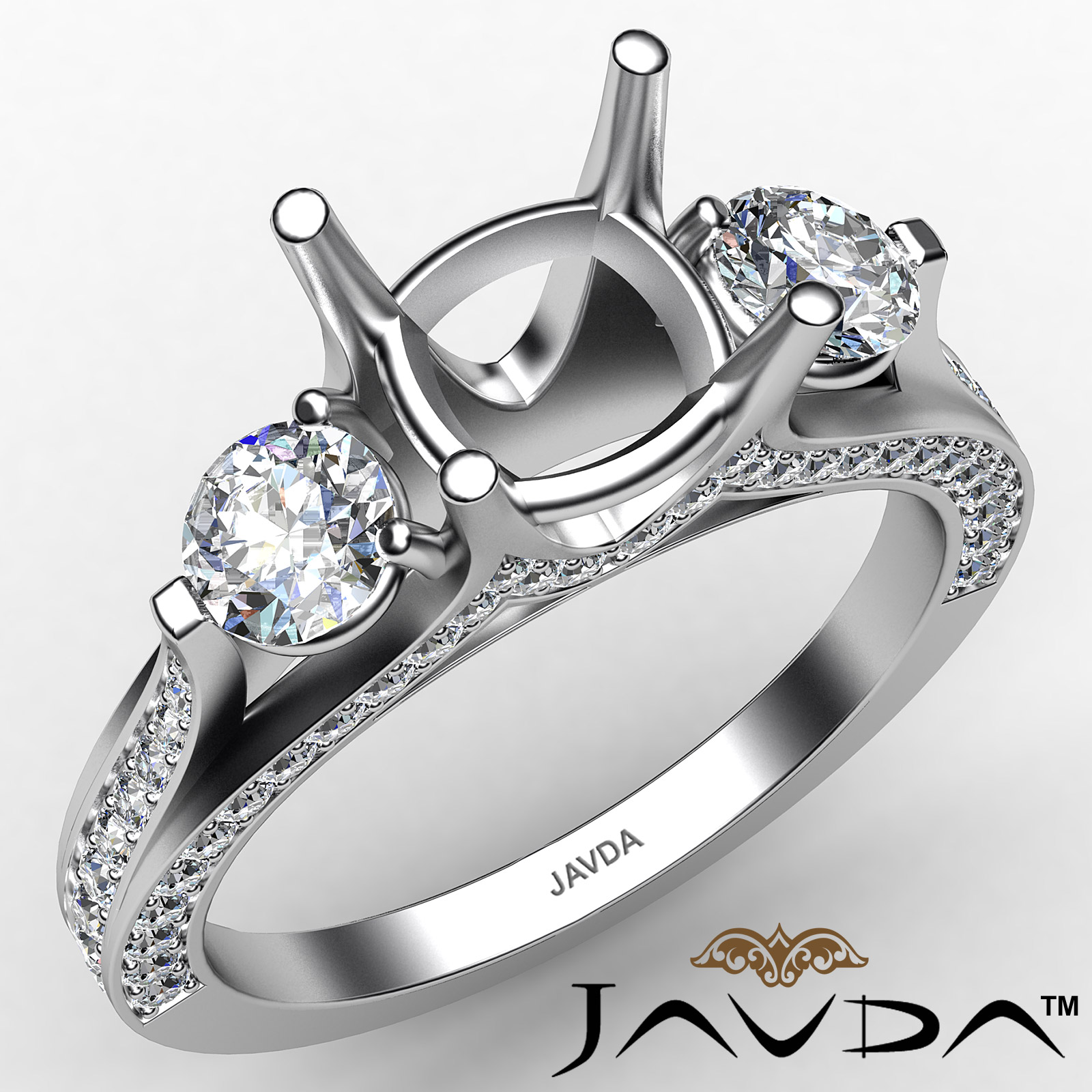Three 3 Stone Cushion Diamond Engagement Ring Platinum Semi Mount (1.3Ct. tw.)