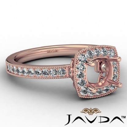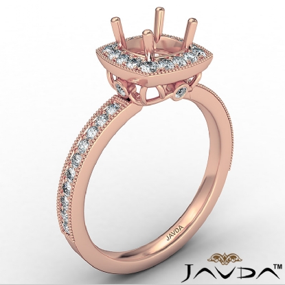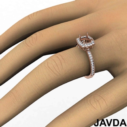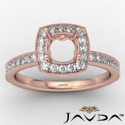 Halo Pave Set Diamond Engagement 18k Rose Gold Cushion Semi Mount Ring (0.5Ct. tw.)