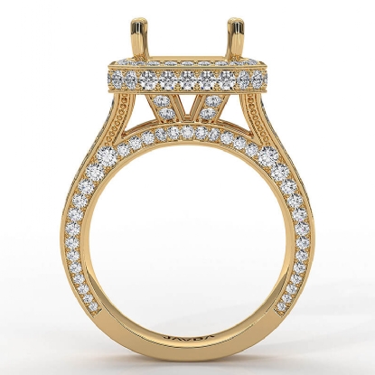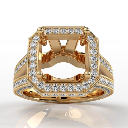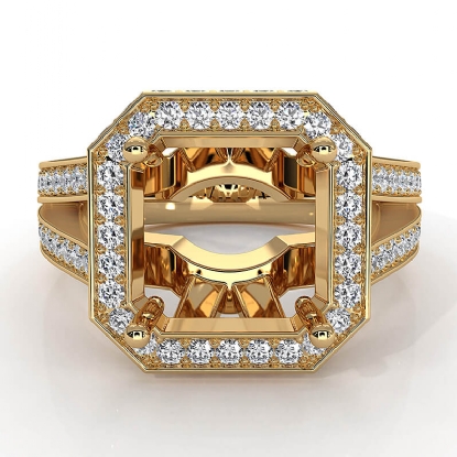 Made in 18k Gold Yellow & unique in design, this . women's diamond engagement ring showcases a asscher semi-mount halo of round pave-set diamonds, along with split shank setting on the shank. (1.5Ct. tw.)