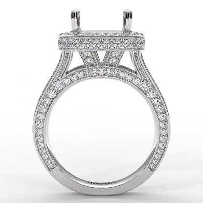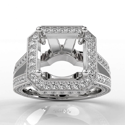 Halo Pave Set Diamond Engagement Ring Platinum Asscher Semi Mount (1.5Ct. tw.)