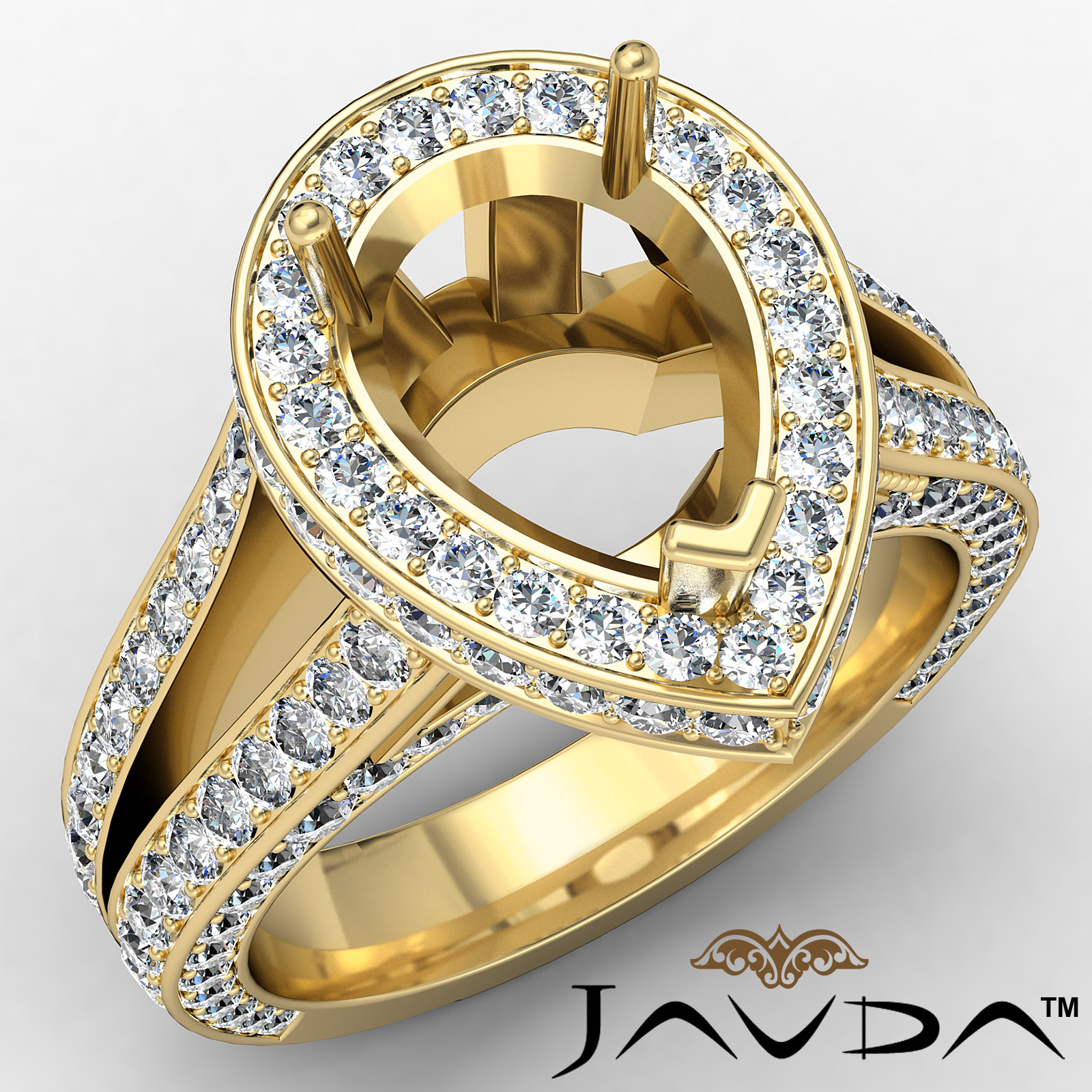 Halo Pave Set Diamond Engagement Ring 18k Gold Pear Semi Mount (1.5Ct. tw.)