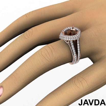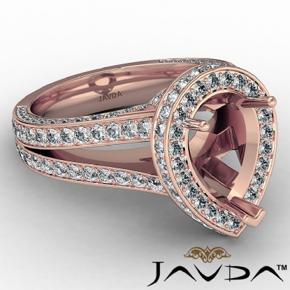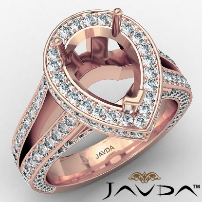 Halo Pave Set Diamond Engagement Ring 14k Rose Gold Pear Semi Mount (1.5Ct. tw.)