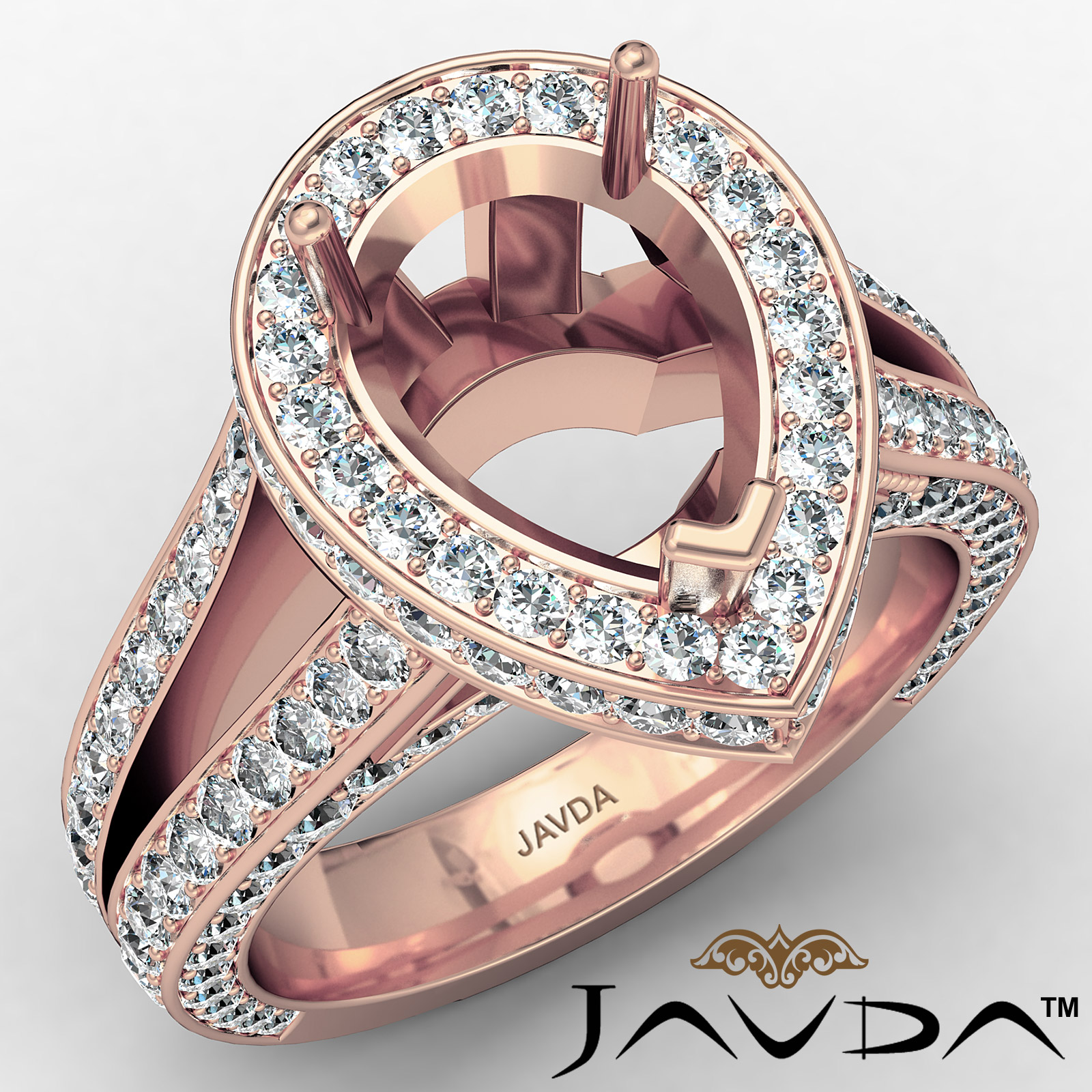 Halo Pave Set Diamond Engagement Ring 18k Rose Gold Pear Semi Mount (1.5Ct. tw.)