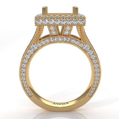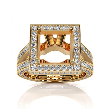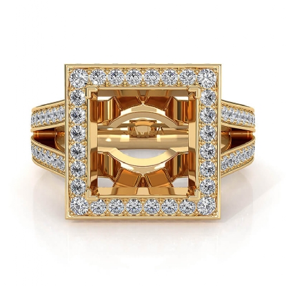 Made in 14k Gold Yellow & unique in design, this . women's diamond engagement ring showcases a princess semi-mount halo of round pave-set diamonds, along with split shank setting on the shank. (1.5Ct. tw.)