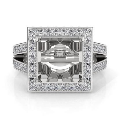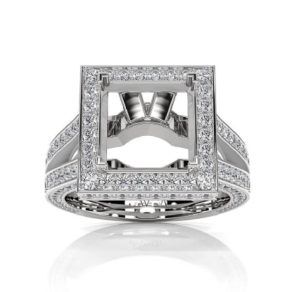 Made in 18k Gold White & unique in design, this . women's diamond engagement ring showcases a princess semi-mount halo of round pave-set diamonds, along with split shank setting on the shank. (1.5Ct. tw.)