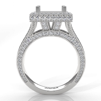 Halo Pave Diamond Engagement Ring 18k W Gold Princess Semi Mount (1.5Ct. tw.)
