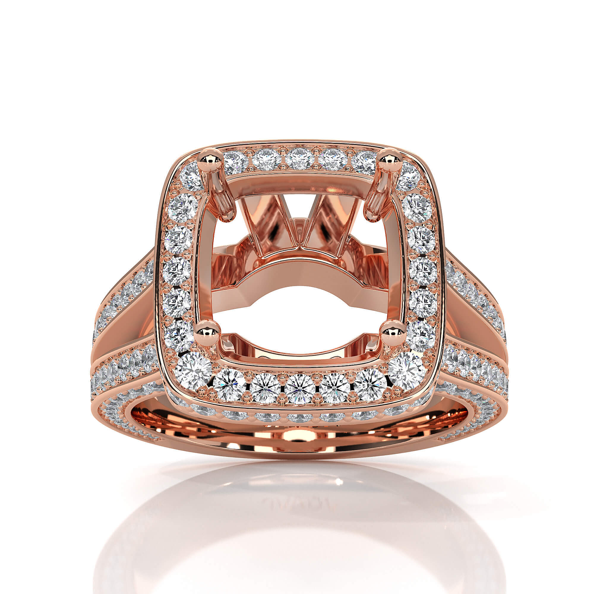 Halo Pave Set Diamond Engagement Ring 14k Rose Gold Cushion Semi Mount (1.5Ct. tw.)