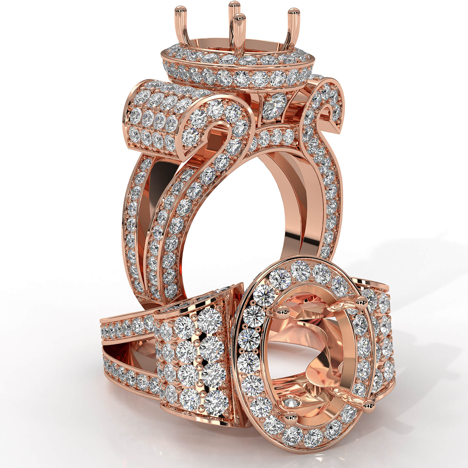 Vintage Oval Diamond Engagement Semi Mount Ring Halo Setting 14k Rose Gold (2.6Ct. tw.)