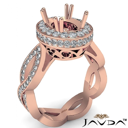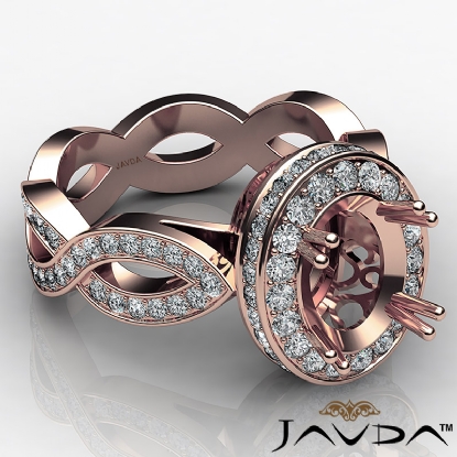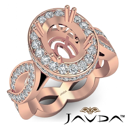 Oval Semi Mount Diamond Engagement Ring Halo Pave Setting 14k Rose Gold (1.3Ct. tw.)