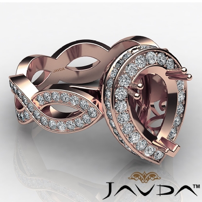 Diamond Engagement Ring Pear Semi Mount Halo Pave Setting 14k Rose Gold (1.3Ct. tw.)