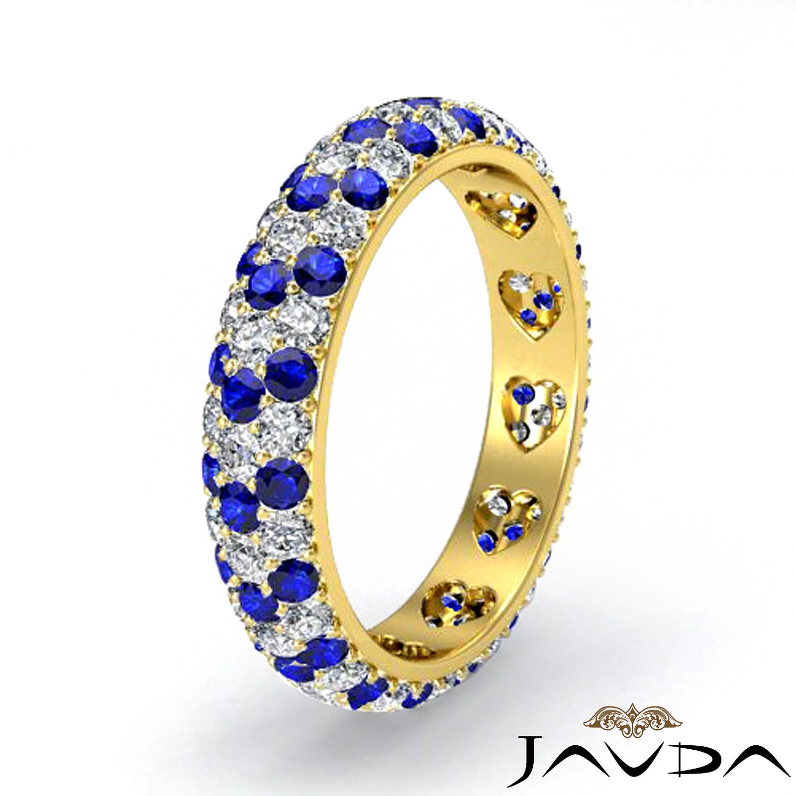 Blue Sapphire Diamond Heart Eternity Wedding Band 18k Gold Women's Ring (0.83Ct. tw.)