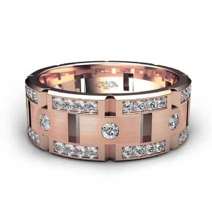 Round Bezel and Pave Set Diamond Men's Wedding Band Eternity Matt and Polished Finished Ring crafted in 18k Rose Gold. (1Ct. tw.)